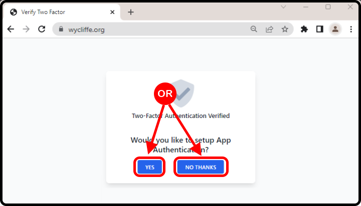 If you wish to set up an authentication app, click Yes. You will need to perform the additional steps below.