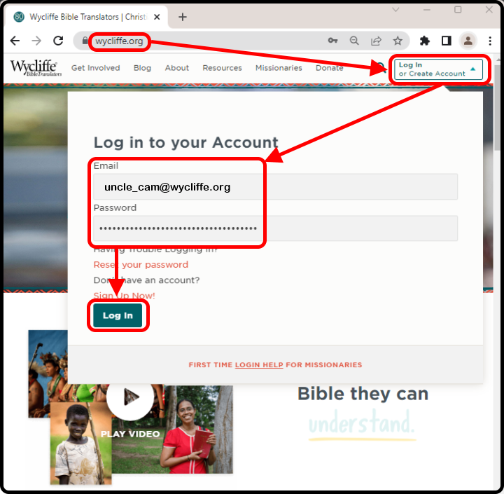 Log in with your Wycliffe.org account.